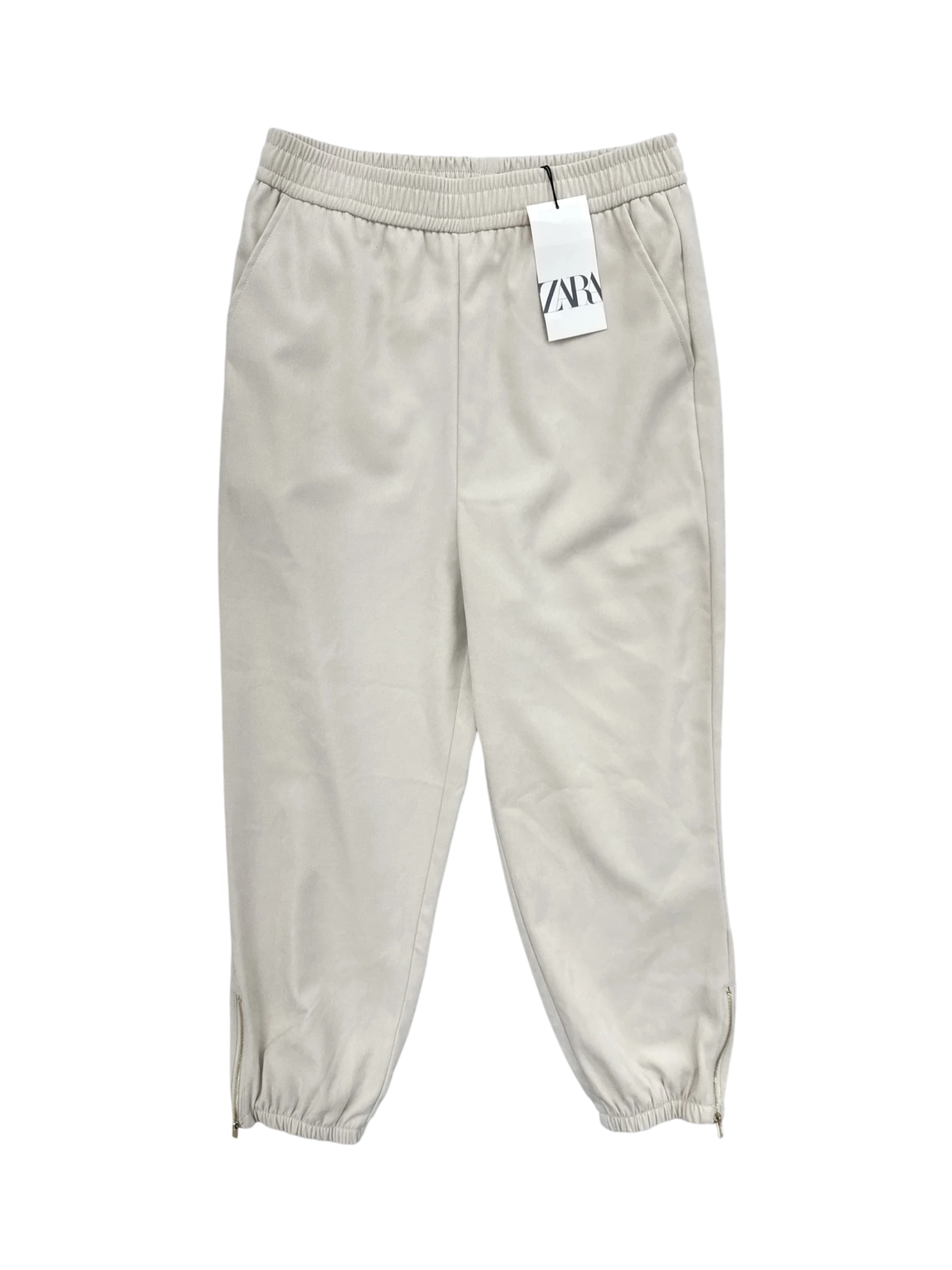 Elevate your casual wardrobe with these stylish Zara joggers. Made from a comfortable polyester blend, these pants feature a modern skinny leg design, perfect for a sleek look. The beige color makes them versatile for various outfits, while the zippered ankles add a touch of edgy detail. Ideal for spring, fall, and winter, these pre-owned joggers offer both comfort and style.