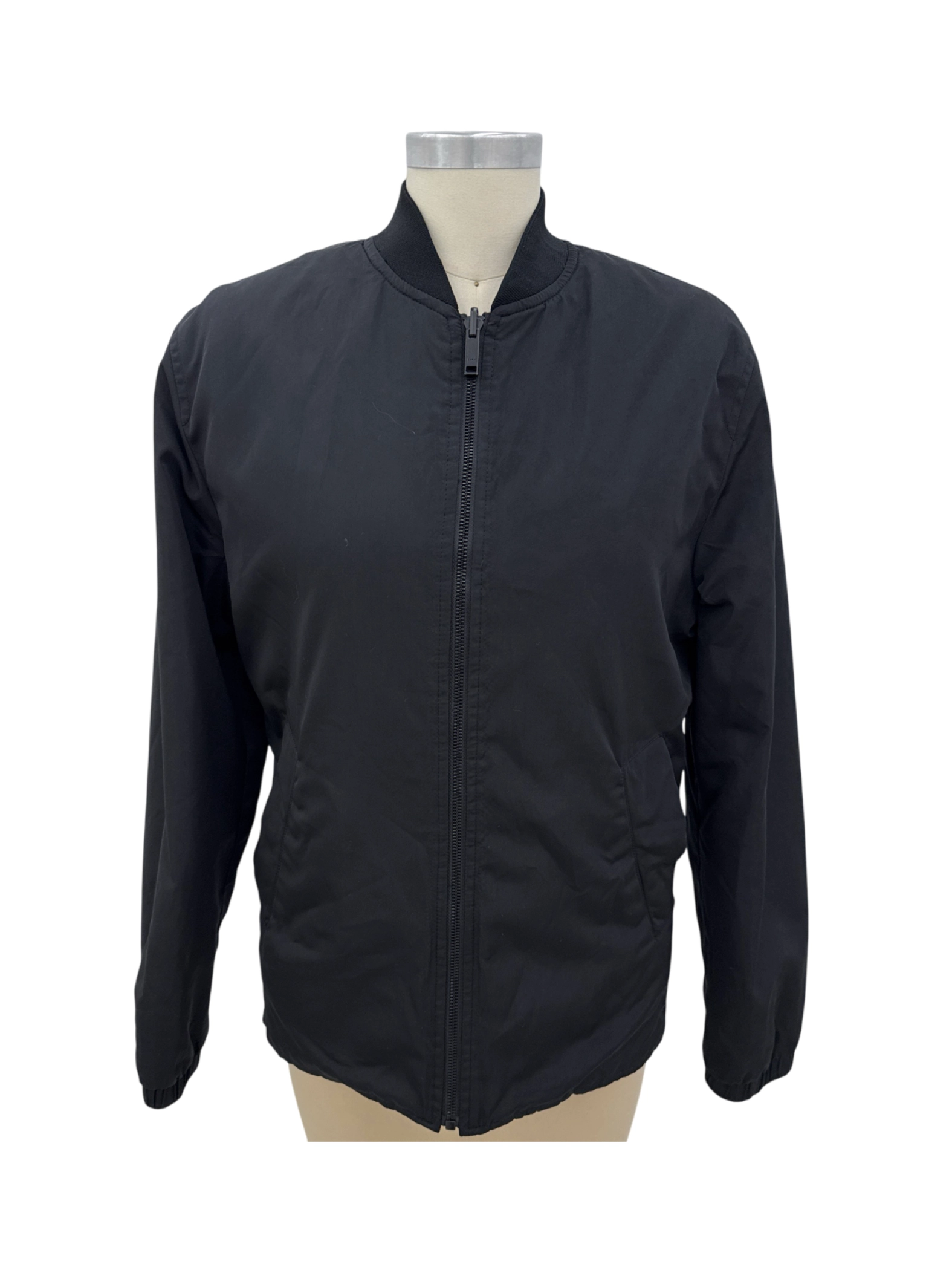Elevate your outerwear game with this stylish pre-owned black bomber jacket from ZARA. This versatile jacket is perfect for adding a touch of sophistication to any outfit. Made from durable polyester, it offers both comfort and longevity. Featuring a classic bomber design, this jacket is ideal for spring and fall, offering a sleek and timeless look. Size 38, it's a must-have addition to your wardrobe.
