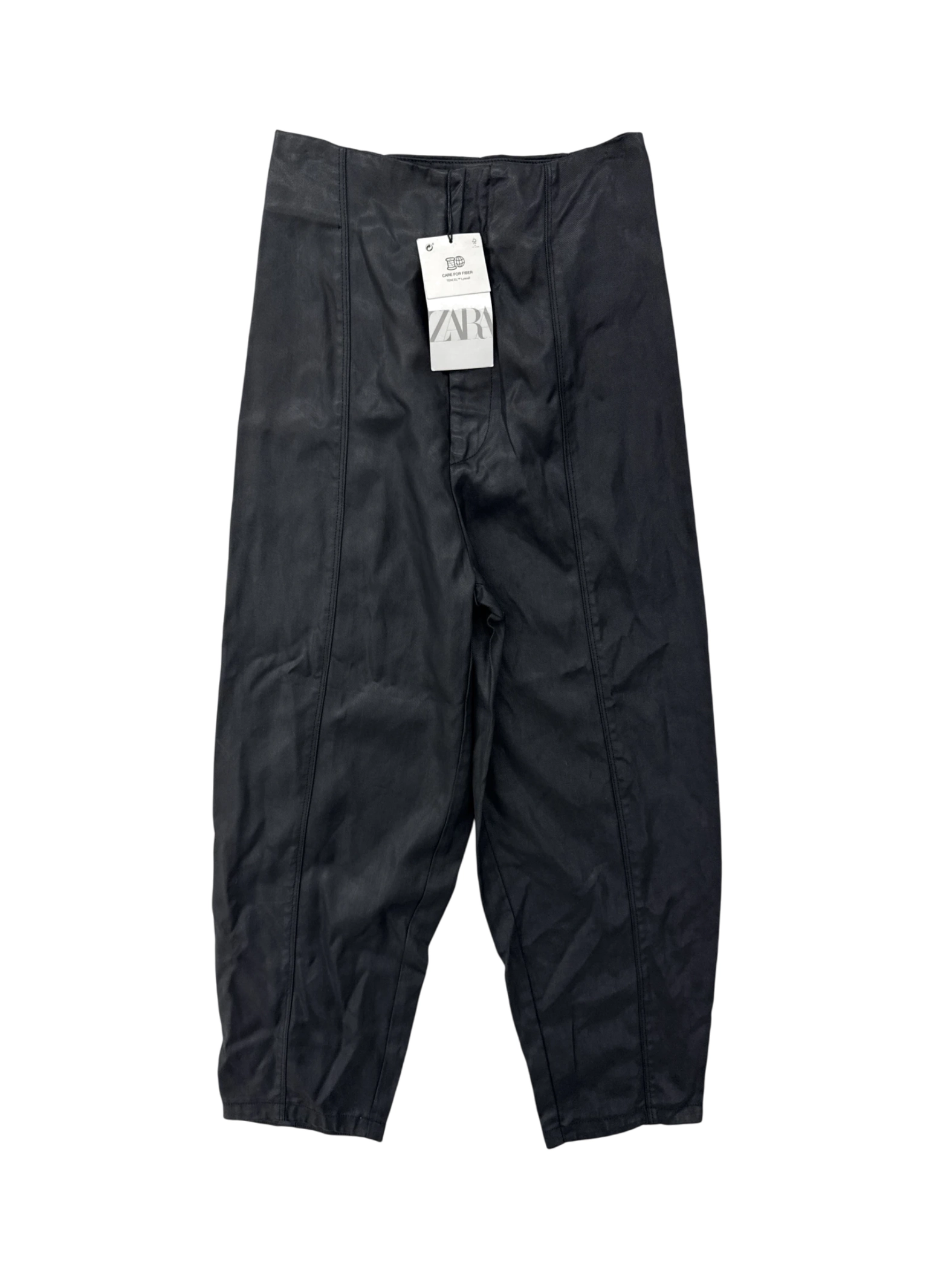 These pre-owned Zara women's pants are a stylish addition to any wardrobe. Featuring a wide-leg cut and crafted from a soft lyocell fabric, these pants offer both comfort and a flattering silhouette. The classic black color makes them versatile for various occasions. Pair them with a blouse for a chic office look or with a casual tee for a relaxed weekend outfit. These pants are a sustainable fashion choice, combining style with eco-consciousness.