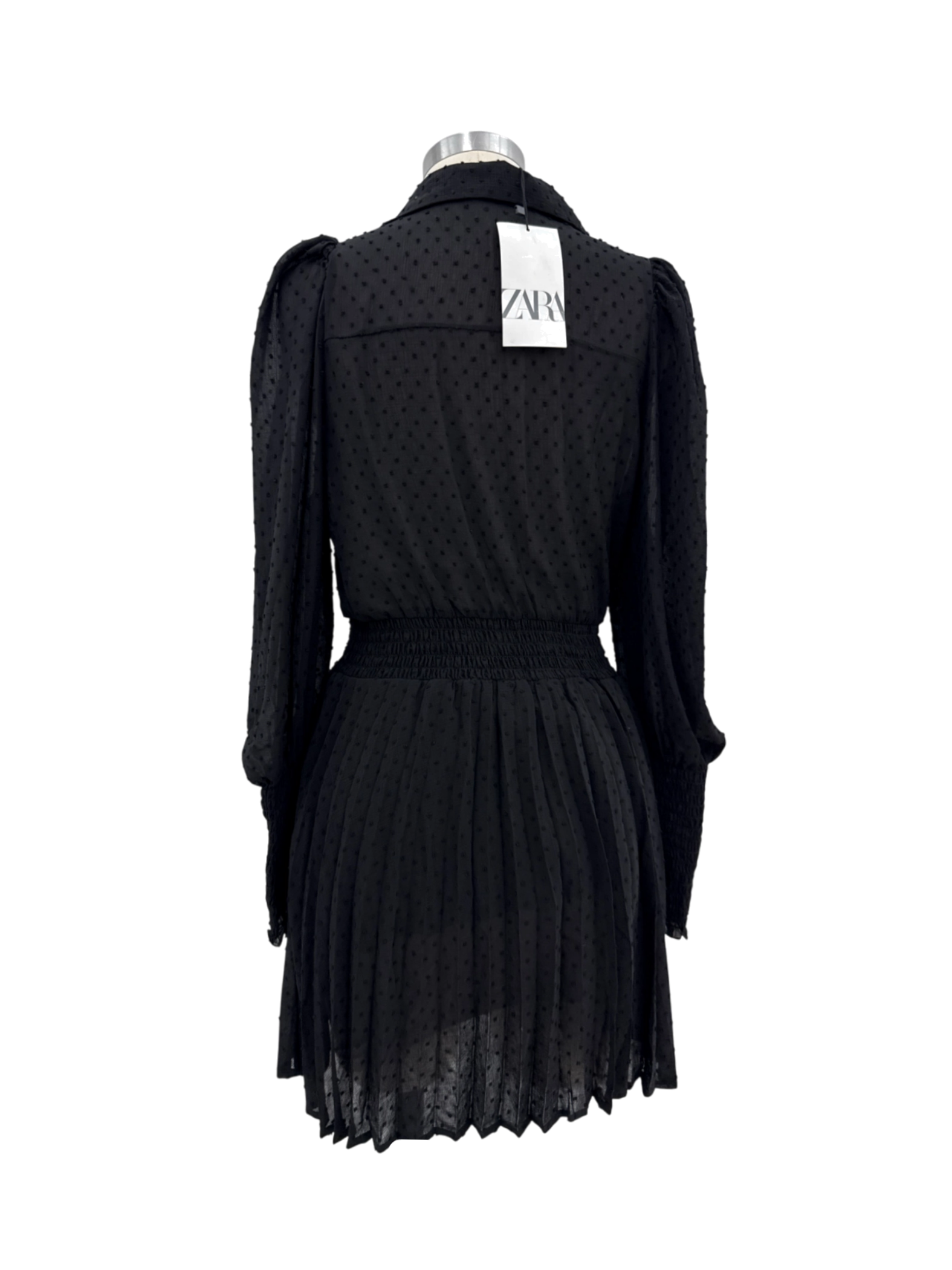 This elegant pre-owned ZARA dress is a perfect addition to your wardrobe. This stylish dress features a flattering A-line silhouette, collar neckline, and long sleeves, ideal for various occasions. Crafted from quality materials, the dress offers a comfortable fit. Its versatile design makes it suitable for both casual outings and evening events. The black color adds a touch of sophistication, making it a timeless piece for any fashion-conscious individual.