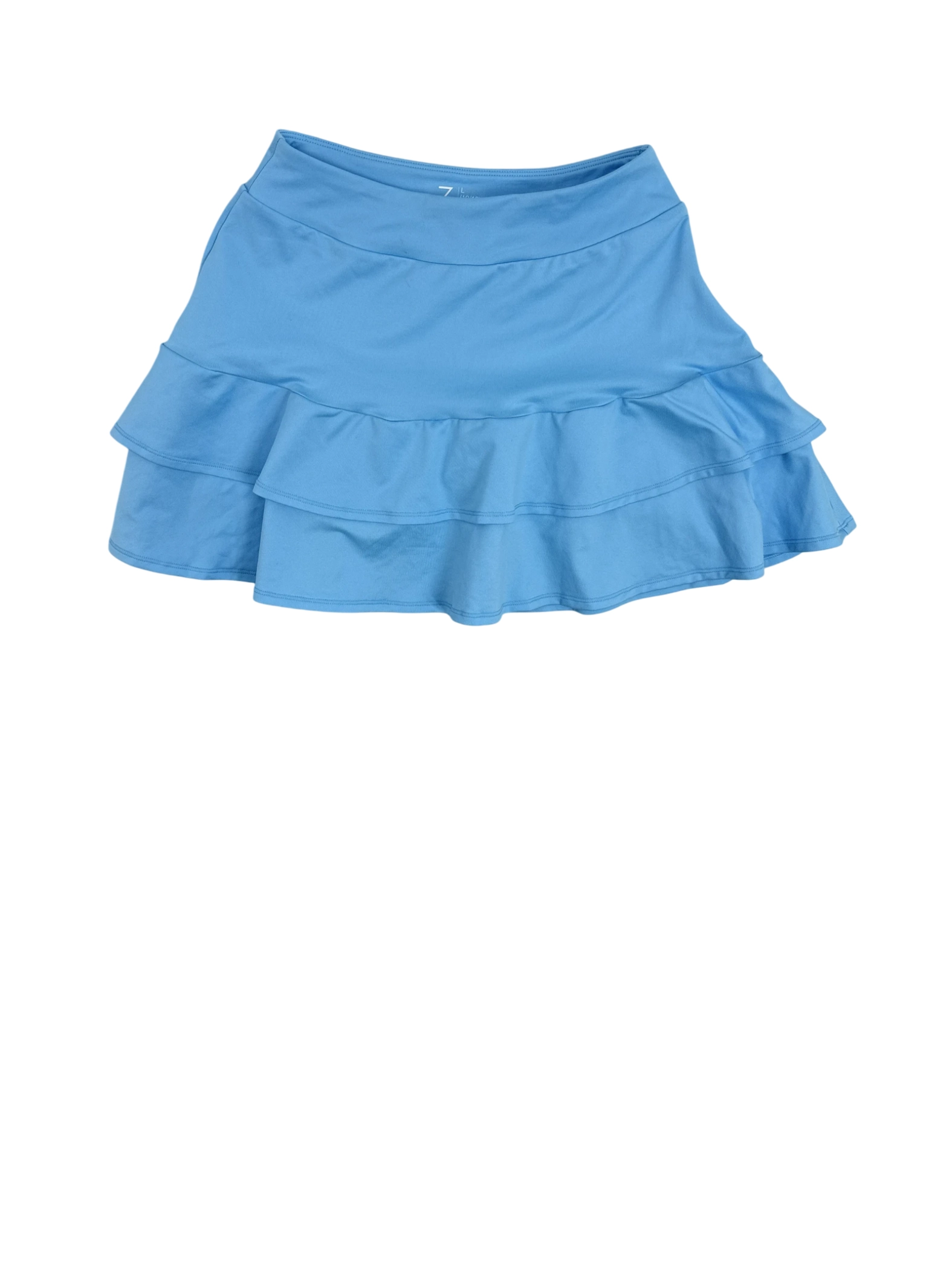 Elevate your activewear wardrobe with this pre-owned Zella Skort, perfect for the active woman. This stylish skort features a flattering design in a vibrant blue hue, ideal for workouts, tennis or casual wear. Made with high-quality materials, ensuring both comfort and durability. This skort is a versatile addition to your activewear collection, offering both style and functionality. This pre-owned Zella skort is a fantastic opportunity to own a premium athletic piece at an affordable price. - Elevate your activewear collection with this stylish Zella skort. Designed with a flattering tiered design, this skort is perfect for your workout or casual wear. Made from a blend of polyester and spandex, it offers both comfort and stretch. The light blue color adds a touch of vibrancy to your active wardrobe. This pre-owned skort is in great condition, offering both fashion and value.