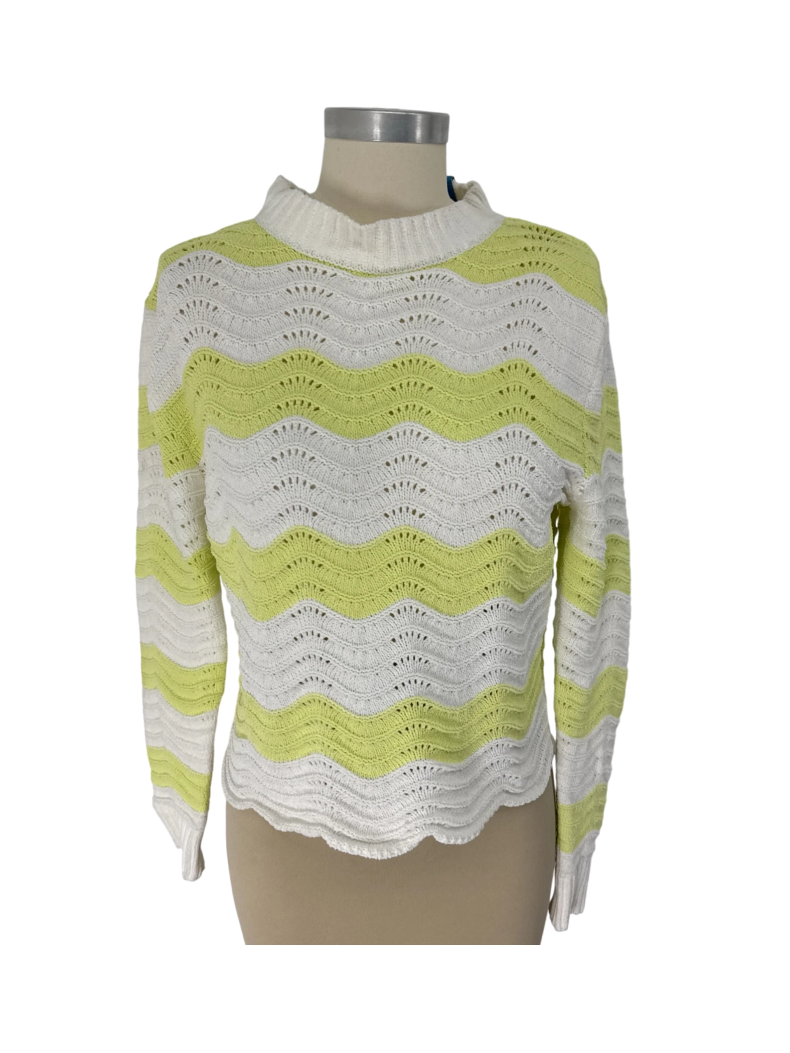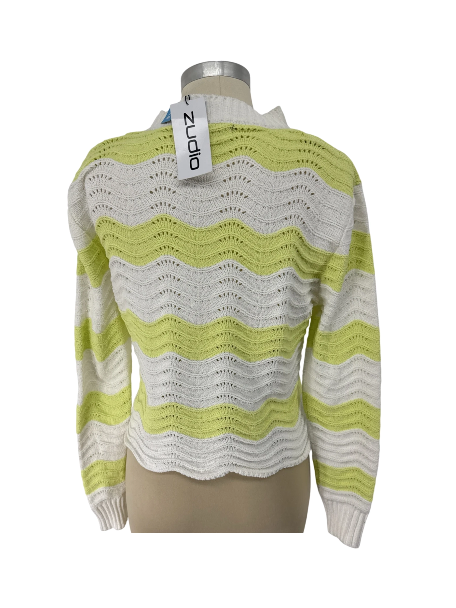 Elevate your wardrobe with this stylish Zudio sweater. This pre-owned piece features a chic striped pattern in white and green. Crafted from soft polyester, this sweater offers both comfort and a flattering fit. Perfect for spring and fall, this sweater is a versatile addition to your collection. It's a comfortable, casual sweater perfect for everyday wear.